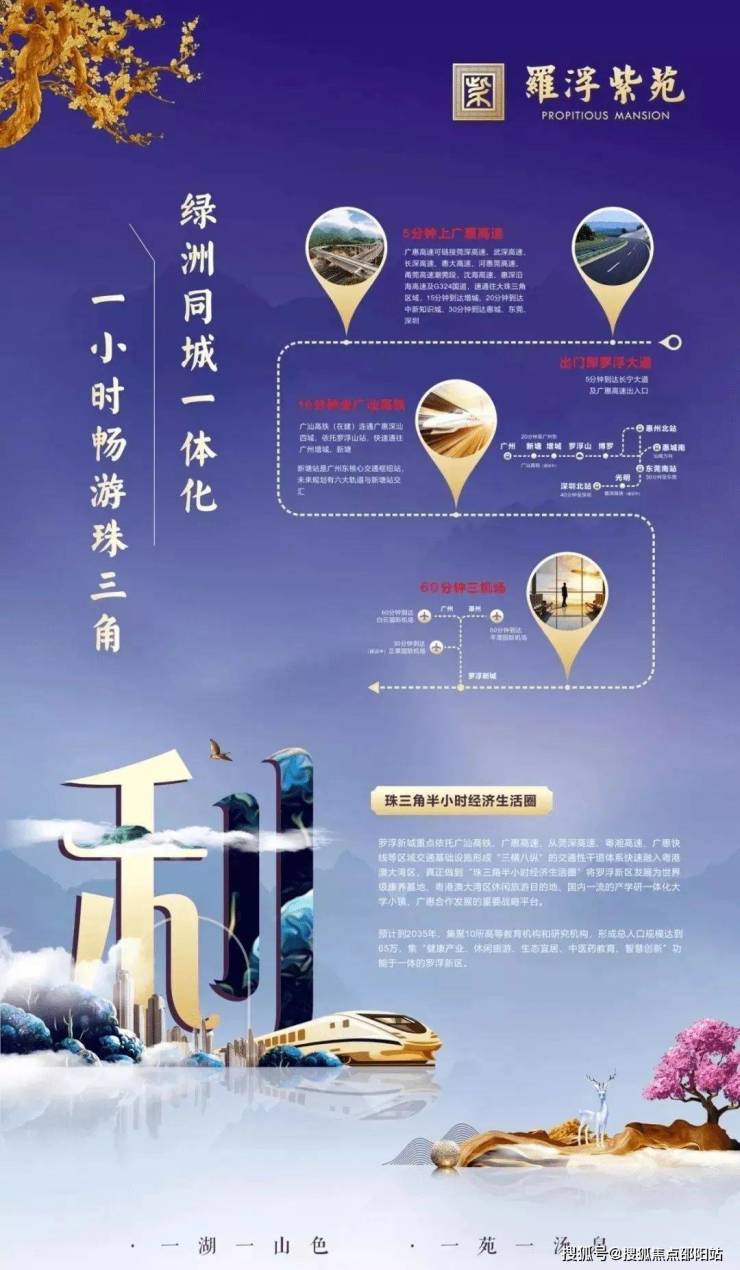 罗浮山被誉为天然氧吧,负氧离子每立方厘米含量最高达14.5万个,位居广东省首位,是名副其实的中国好空气,居罗浮紫苑,享负离子好空气,山林间0污染山泉,地,广州东进,高铁新城,依托广汕高铁罗浮山站,广州东机场,正果国际机场,双极核东进政策,助力罗浮新城腾飞,利,环珠三角,便捷生活。