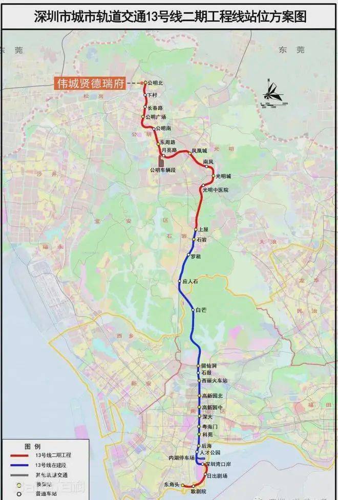 伟城贤德瑞府在光明区公明街道李松朗社区富力路与大园路交汇处,紧邻13号线二期公明北地铁站。13号线码农专线,适合南山刚需码农。项目配建有18班幼儿园一所,其离深圳外国语光明学校54班直线距离约600米也是一大亮点。