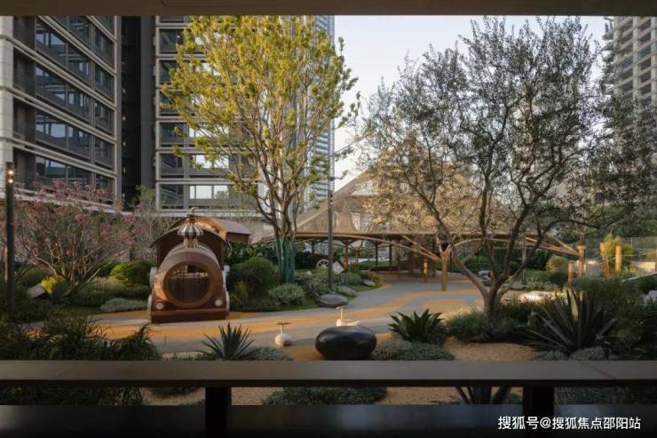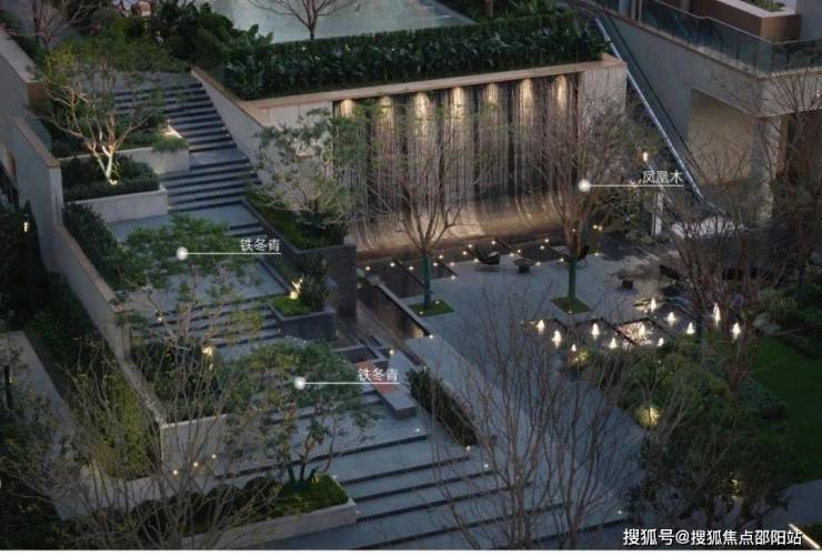 独特的云梯式台阶设计与花池交织,搭配错落有致的铁冬青与叠水景观,为社区赋予精致立体的自然体验。