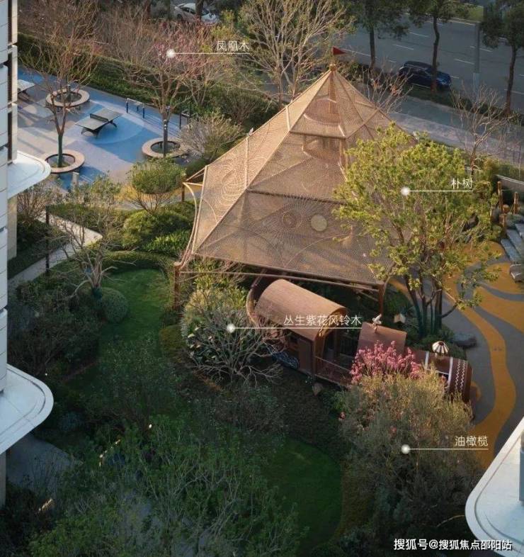 儿童乐园调性以充满野趣的地貌探索乐园为主,充满冒险与想象,植物搭配错落有致,主景树以朴树、油橄榄、凤凰木为主,整体氛围通透舒适,让孩子在玩乐中不断发现新的空间与趣味。