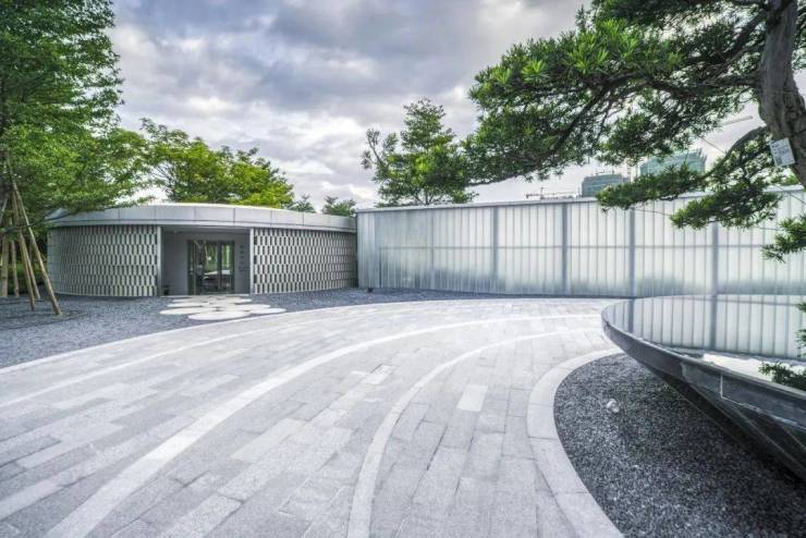 在展示中心入口处设计起伏的白色山丘,先抑后扬的白色玻璃景墙和白色接待厅用来告别熙来攘往的喧嚣,选择白色和绿色来纯净画面。