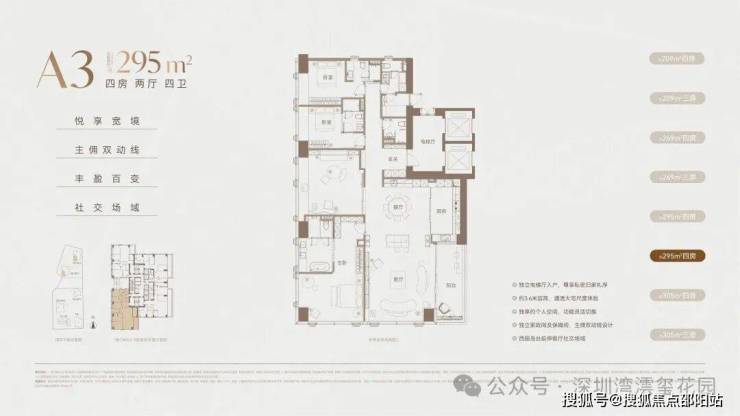 项目核心信息方面,深圳湾澐玺规划为纯粹的低密度高端住宅社区,建筑以现代东方的设计语言,通过简洁的体块、精致的细节和富有质感的材料,营造出静谧而尊贵的氛围。社区内部强调庭园景观与建筑的对话,形成层层递进的归家礼序与静谧空间。产品定位为终极改善与家族传承资产,提供极为奢阔的大平层及复式产品。户型设计追求空间的绝对尺度感、通透性与艺术性,采用全景落地幕墙、空中庭院、独立家政动线及多套房设计,将深圳湾的无敌海景、城市天际线与远山作为生活的永恒背景,同时确保家庭成员间互不干扰的私密与宁静。