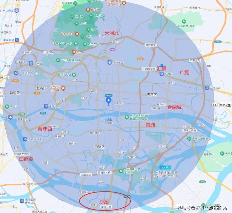 而且,沙溪虽然是番禺,但其和珠江新城的直线距离和三溪是一样的,都在珠城9公里范围内,那可是20万一平的广州顶豪。