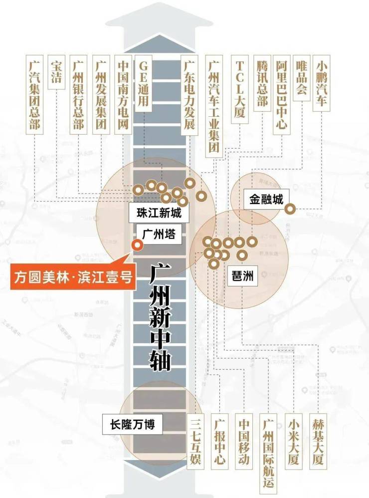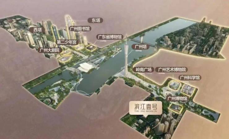 项目位于广州的中轴线,北面望广州塔和无敌江景。
