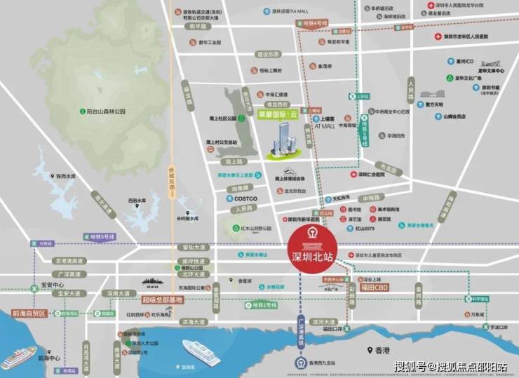 紧邻项目的龙华北站超核片区,位处深圳七大总部基地之一,商办密度比肩前海,集聚世界高层次人才,吸引诸多名企总部落户,打造“国际会客厅”。