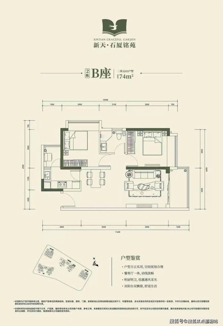 2房2厅1卫74㎡