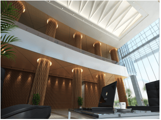 4. 16米超高挑空大堂,高档花岗岩材质,典雅大气,,彰显企业尊贵形象;