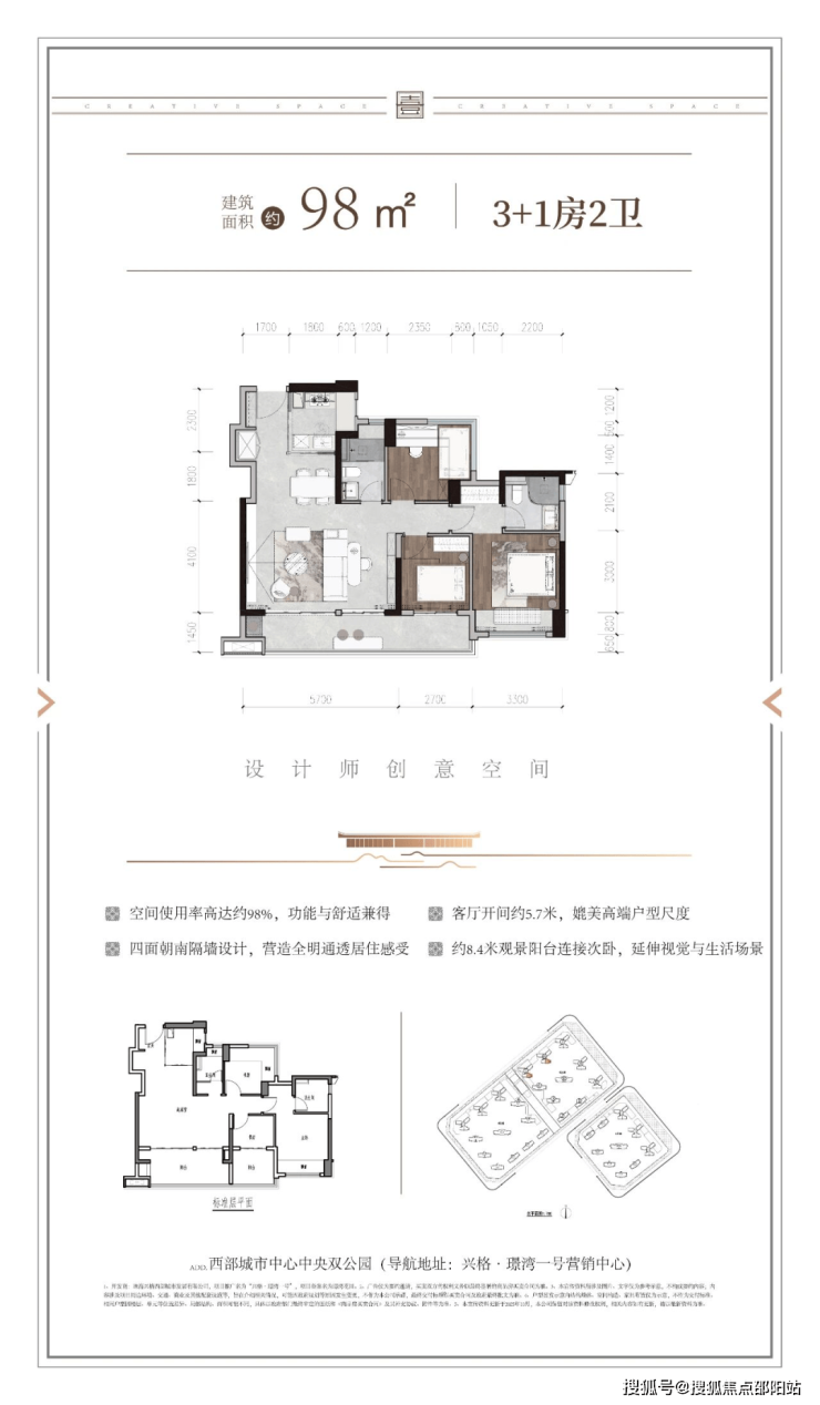 户型还注重“景观无界融合”,让每间房的可视面最大化。