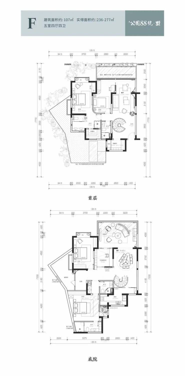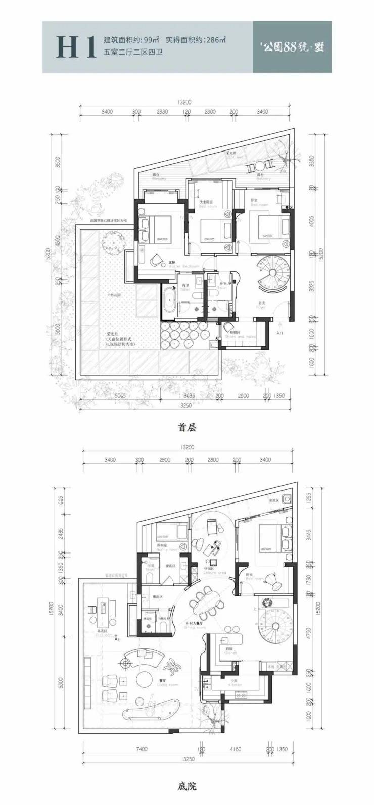 双庭院 双主卧套房设计