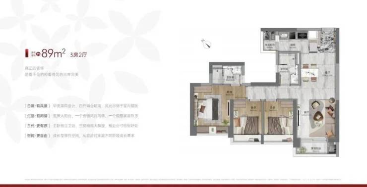 76-89㎡爆款三房,总价280万起。