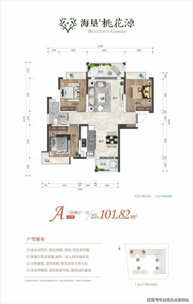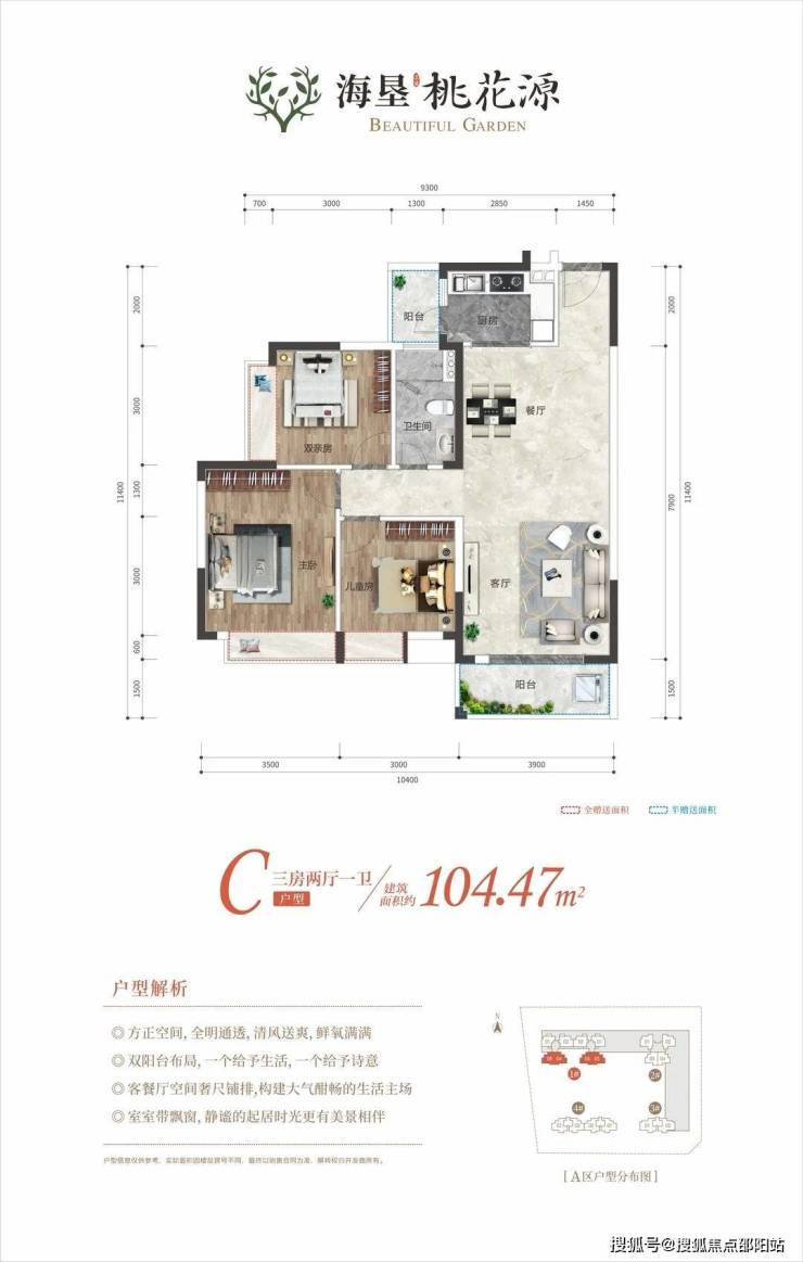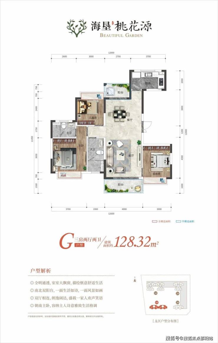 海垦·桃花源提供了多种户型选择,包括但不限于101-128㎡的三室两厅一卫和三室两厅两卫户型