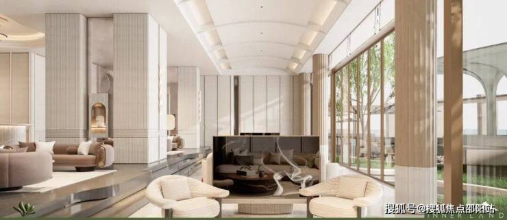 复刻法国香榭大道风情,以白马庄园秩序罗马柱为灵感,打造一方庄园会客厅。