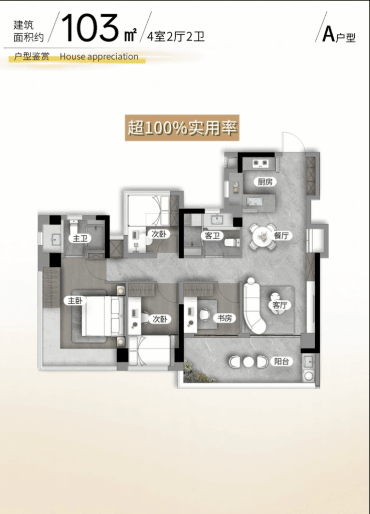 【建面约103㎡四房】改善入门级爆款 一步到位