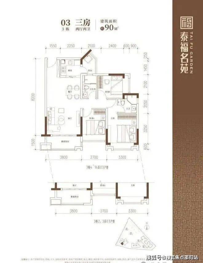 90-102㎡的3房2厅2卫户型。这几个户型都是在主人房多设计一个卫生间,私密性更强,也让家人间的生活更加方便。