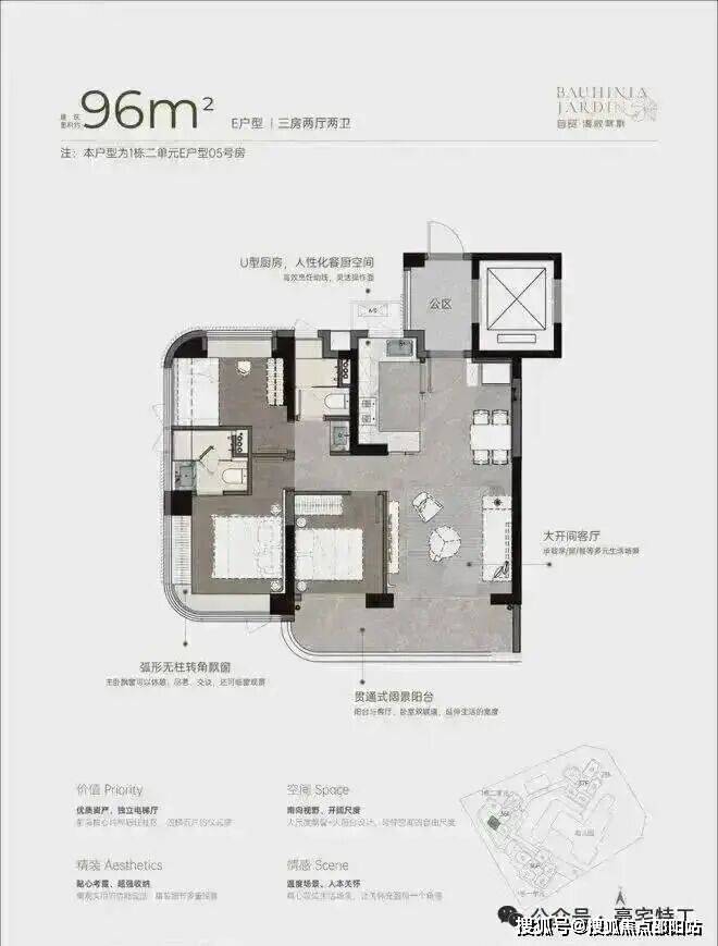 • 270°弧形无柱大尺度飘窗、大宽厅、大阳台,带来更多使用空间。