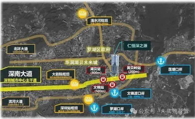 占位:国家级区位 深港融合C位0世界四大湾区之一粤港澳大湾区领头羊.国家战略赋能:2香港北部都会区将全域对接罗湖,项目距离文锦渡口岸仅800米,深港融合第一触点