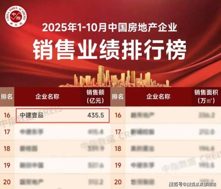 在中指研究院统计的2025年1-10月房企销售业绩排行榜单中,中建壹品以435.5亿元的销售金额,位居全国第16位,成为近年来进步最快的“央企黑马”。