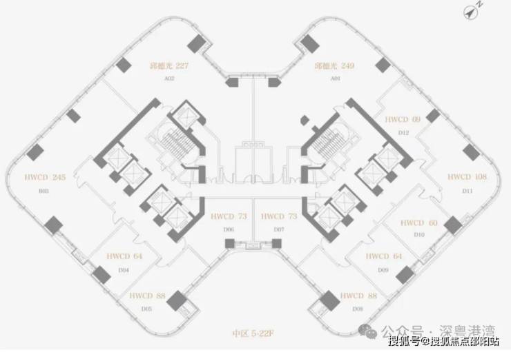 方胜纹双核心筒的设计使得整栋建筑更加高效和私密,并实现了双专梯电梯入户,为塔尖人群高效的工作和私密的生活而服务。转角处曲线设计,拓宽了整个建筑界面,使得建筑拥有270°转角无柱开放式观景视野。是塔尖人群拥揽深港的极佳观景台,足以盛放您帷幄城市的雄心。