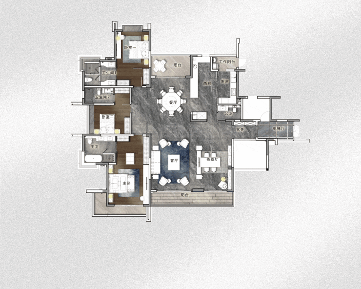 在侨建·御溪谷大平层户型的设计中,可以清晰的看见侨建·御溪谷对于高净值家庭需求的了解。三房空间设计、全套房的豪华配置,LDK餐客厨一体设计,恢弘大气之间,尽显房屋主人不凡胸襟,勾勒出其乐融融的设施生活场景。