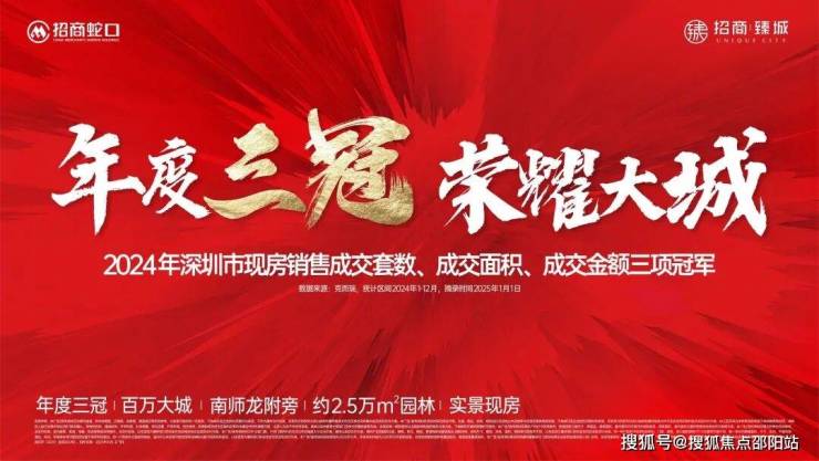 项目荣获2024年深圳市现房销售成交套数、成交面积、成交金额三项冠军,百万大城之上,一期压轴之作,入主央企大城的机会,热势竞藏!