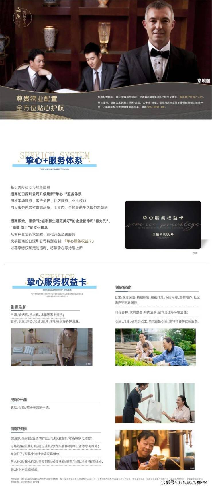 “招商积余”超36年服务经验,中国物业服务企业综合实力500强前3名;项目选用与海上世界·双玺,太子湾·湾玺等社区相同的物业公司。