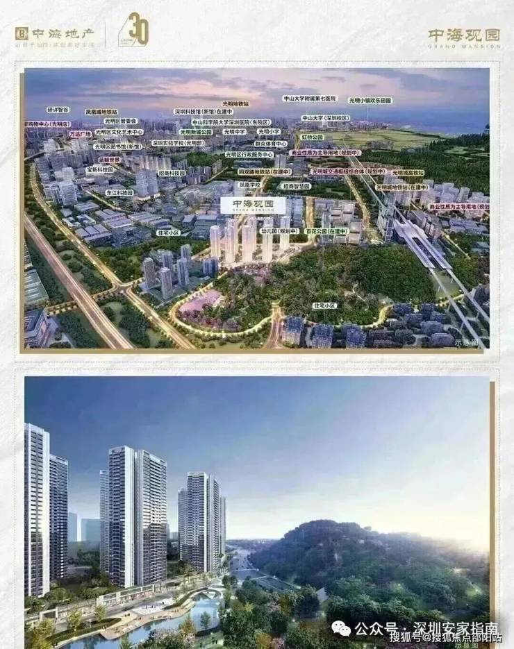 中海观园整体上位于光明凤凰城片区龙大高速和光侨路处,项目占地3.2万平,总建筑面积约18万平,由8栋高层建筑组成,分别为6栋高层住宅+2栋人才房,配建幼儿园及商业等。该项目为2021年9月28日深圳22宗住宅地集中出让地,中海以37.34亿+配建21000平获得