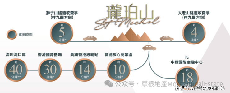 同时项目邻近两大主要隧道,由项目驾车前往狮子山隧道收费亭(往九龙方向)及大老山隧道收费亭(往九龙方向)分别只需约5分钟及约4分钟