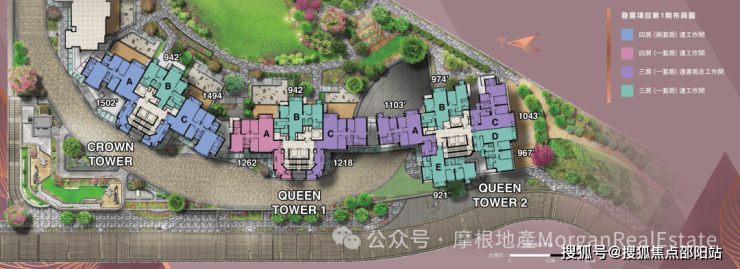 【户型】:一期提供196伙,二期提供139伙,户型涵盖了三至四房以及特色户型,实用面积介于920至2152平方呎。