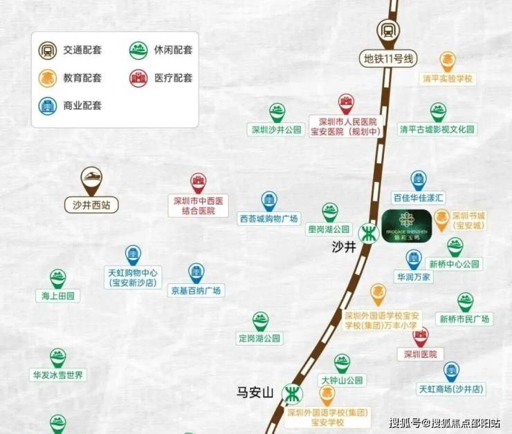 项目享有六维交通网,含广深高速、外环高速等自驾路线。广深高速新桥出口5分钟车程,外环高速新桥站10分钟可达,快速通达福田CBD、宝安机场。穗莞深城际沙井西站10分钟车程,公交653路直达,未来至前海核心区15分钟,便捷连接广州、东莞。