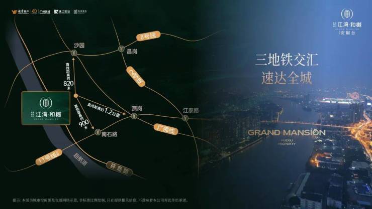 项目坐落广州主城海珠区,立于珠江后航道,坐拥千年羊城繁华;地处海珠新活力文商旅融合圈之内,低密滨江生活,主城热土,天生瞩目