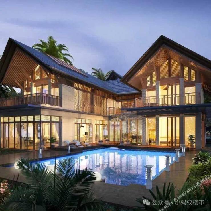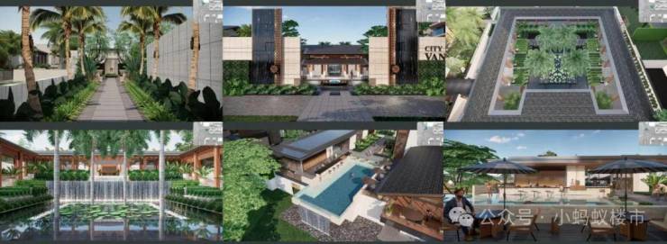 园林设计:东南亚度假风园林,三大主题景观区——雨林之源(迈阿密风)、千岛之屿(加勒比风)、源墅之丘(夏威夷风),打造“家门口的环球旅行”。