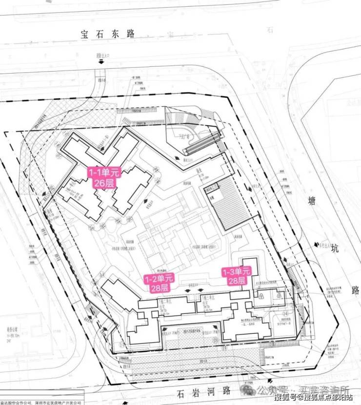 名峯世纪府原为官田工业区城市更新项目三期,地块位于宝安区石岩街道宝石东路与塘坑路交汇处的西南侧。