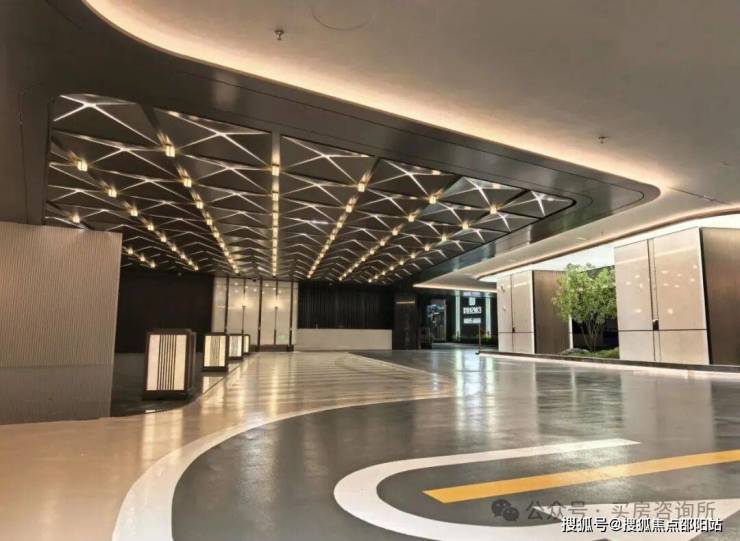 项目品质打造的也还不错,这大门跟停车场在改片区来说应该是最豪华的一个项目了!宝格丽绿色菱形背景墙+星空顶+铂金砖大理石门廊!更加期待门庭前的水景和名贵树种点缀后效果