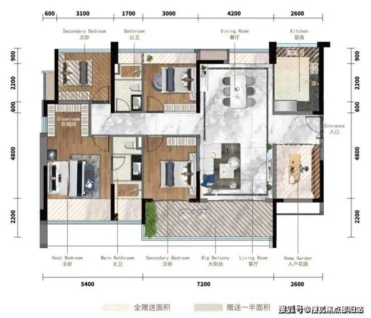 项目二期8栋02户型144㎡央景楼座户型,可瞰五桂山以及东区市区景观,还能看到星河CoCo City商超。在空间布局上,144㎡户型拥有专属入户花园,面积全赠送。