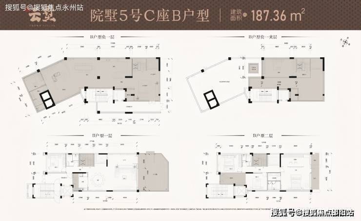 举个例子1:187㎡户型,1-2层下叠户型,赠送前庭后院,还有二层空间地下室。