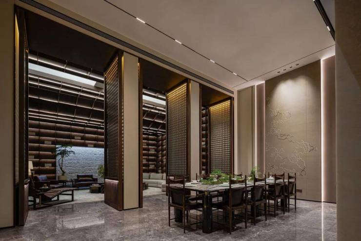 影音室、藏品品鉴区、商务会客区,还有足够的空间容下10余人的餐桌,这无异于把高级私人会所搬到家中,满足高净值人士的多重社交需求。