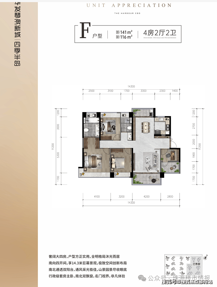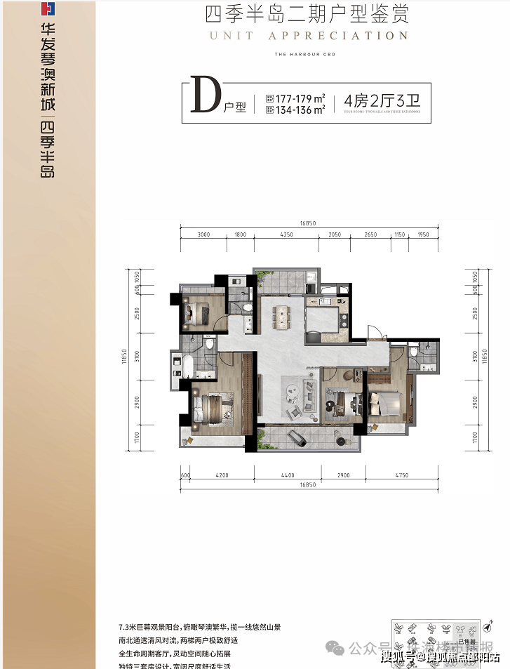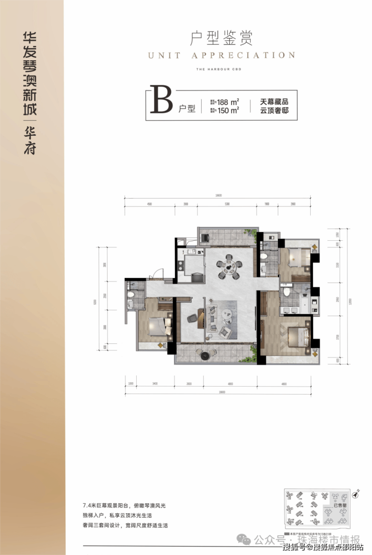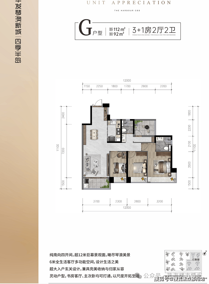 湾区西岸罕见CBD醇熟大城,超9000户业主信心之选;享海陆空立体交通、千亿配套环伺;荣获2020年珠海唯一上榜、全国单盘销售NO.17,2021年1-10月珠海网签量第一名,2021年1-10月全国单盘销售额NO.8。