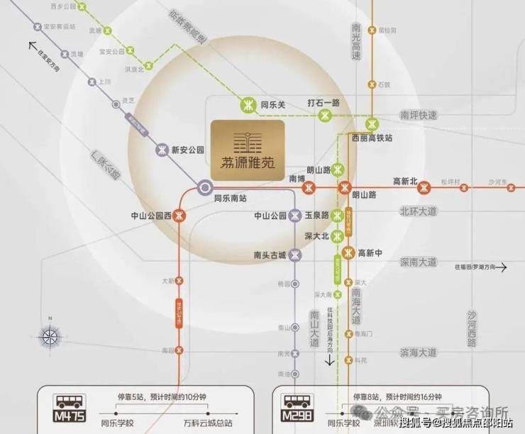 看下图,同乐公馆东面是南山科技园,西面是前海,南面是后海、深圳湾,北面是西丽留仙洞。