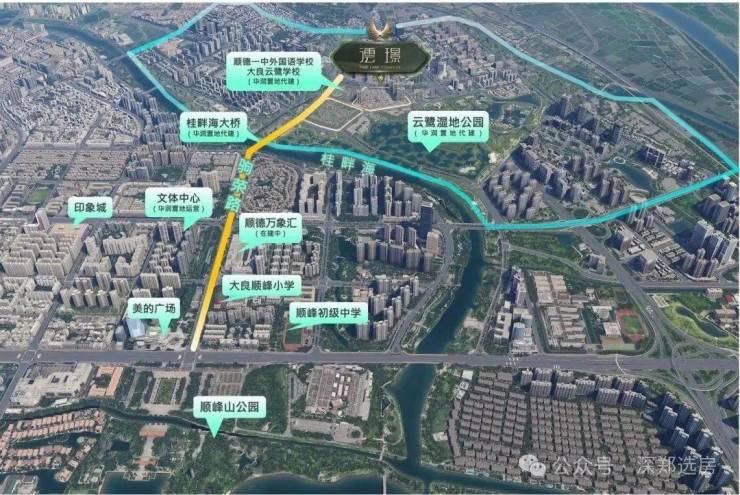 华润置地·顺德澐璟,坐落于佛山市顺德区大良街道的云鹭片区,这一区域不仅是顺德城央的璀璨明珠,更是大良东区超级中轴上的天赋宝地。项目紧邻桂畔河,与顺德绿地中心隔水相望,自然景观与城市繁华交相辉映,形成了“出则繁华,入则宁静”的独特居住体验。