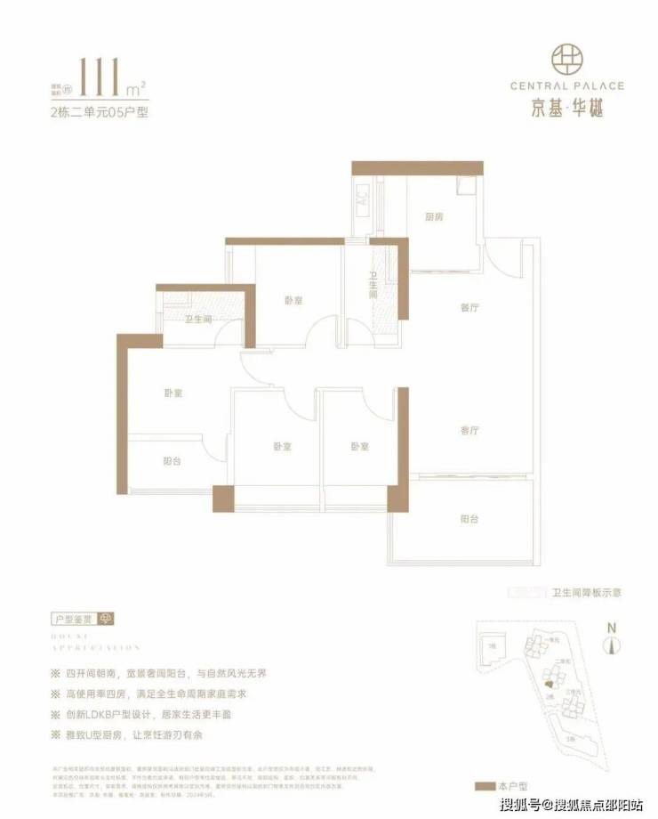分布在2栋二单元05户型,传统竖厅,动静分区,四开间朝南,客餐厅一体出阳台,阳台宽敞实用,主卧比较宽敞,套间设计卫生间干湿分离,高使用率四房