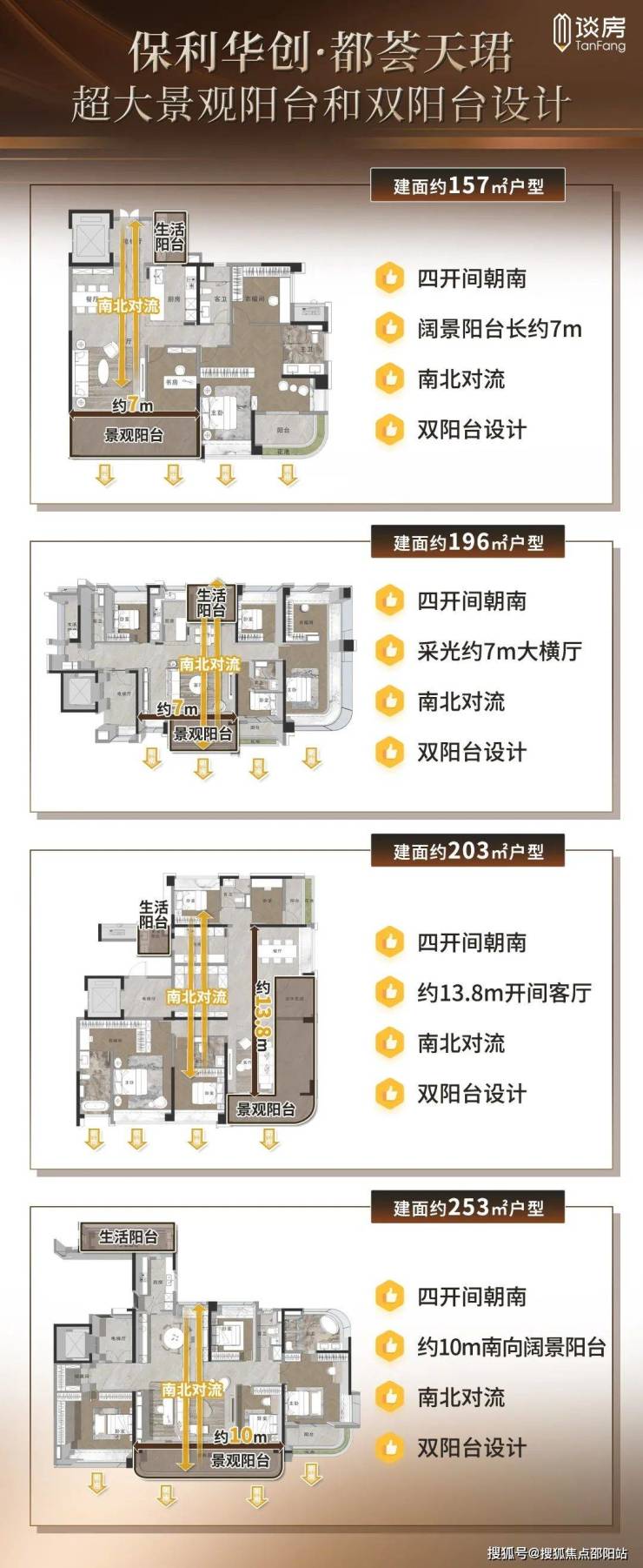 户型:建面约157-257㎡四至五房