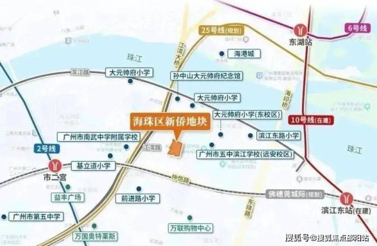 1 公里内有大元帅府小学(市一级)、滨江东路小学、广州市第五中学(省一级)等,配建幼儿园规划中,但优质公立小学对口尚未明确,存在一定不确定性;