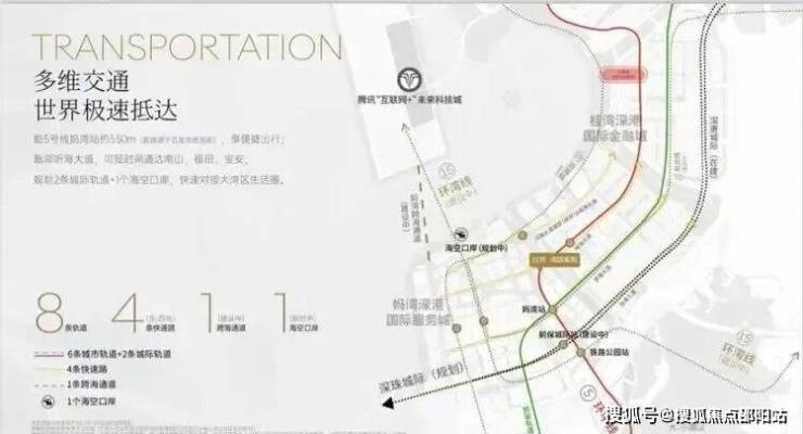 距离5号线妈湾站步行距离约550米(数据来自百度地图),未来将接驳6条轨道交通;