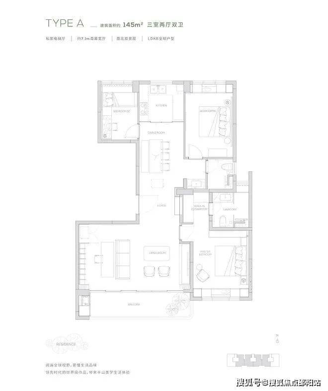 【145㎡户型】独享私家电梯厅-约7.1m²森幕宽厅-LDKB全明户型