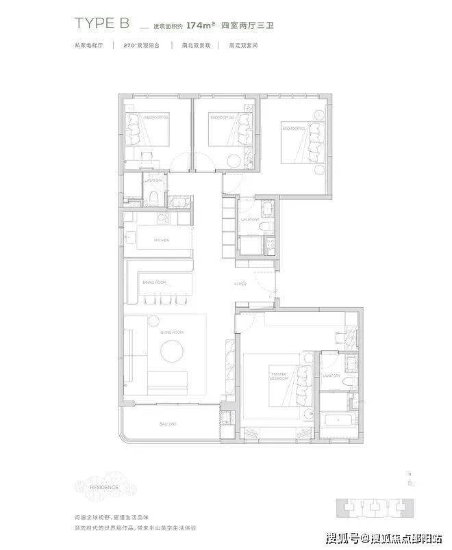 【174㎡户型】独享私家电梯厅-270度环幕观景阳台-高定双套间