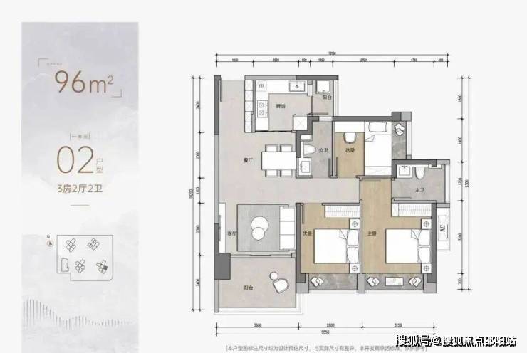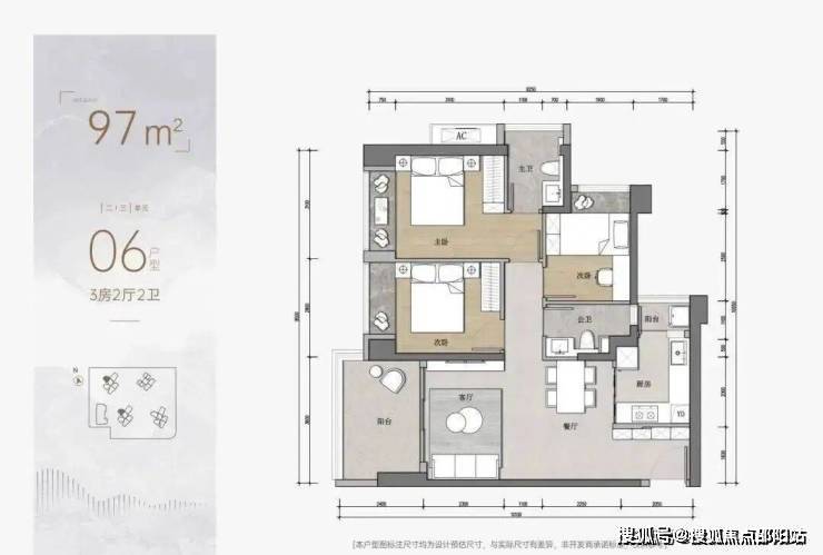 3房为97平3房2卫的户型