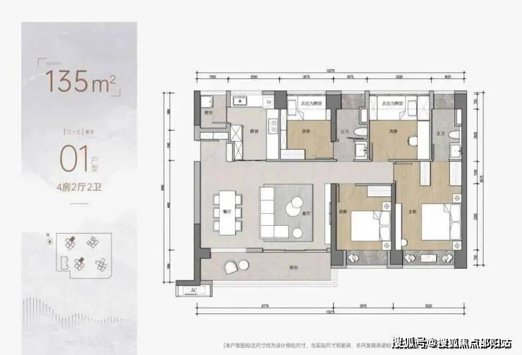 135平的大4房则是做了横厅设计
