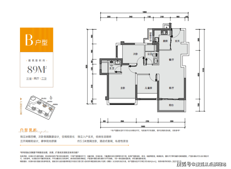 独立冰箱凹槽,宽阔飘窗设计,空间极致化
