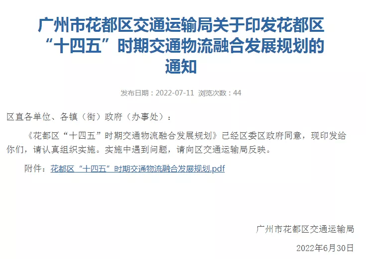 花都区十四五时期交通物流融合发展规划提到,充分利用北站及机场两大枢纽顶级流量,作为地区发展动力源,强化区域内外交通衔接,加强轨道站城市公共交通配套线路和换乘设施建设,实现与城市建成区、城市其他重要综合交通枢纽之间的快速连接、便捷直达,带动花都区迎来新的腾飞