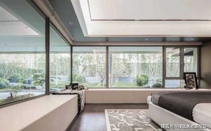 在主卧的打造上,项目采用五星级酒店的设计灵感,打造了总统套房式的居住体验。在空间尺度上,单是面宽就达到了约6.2米,面积约56㎡。